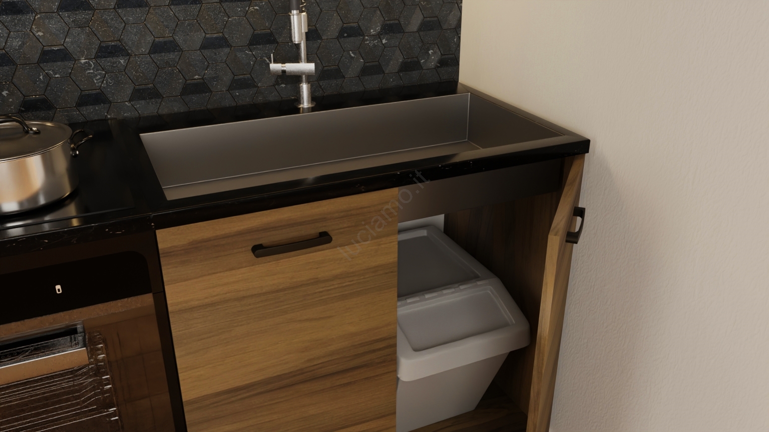 • Non sono inclusi gli elettrodomestici, il lavello, il rubinetto da cucina e il piano di lavoro superiore.