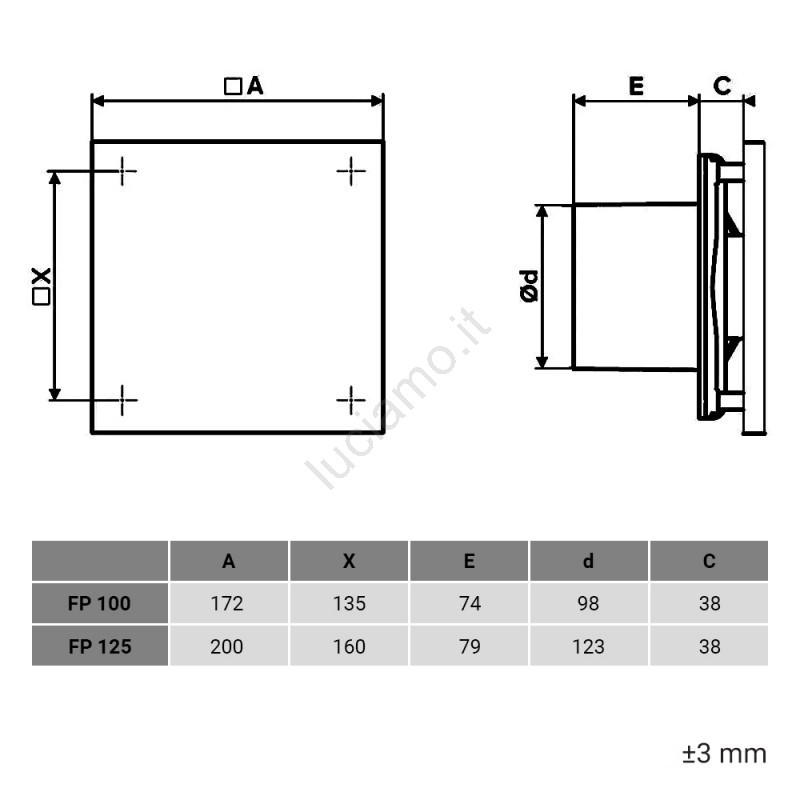 • Il ventilatore è compatibile con tubi di diametro 125 mm.