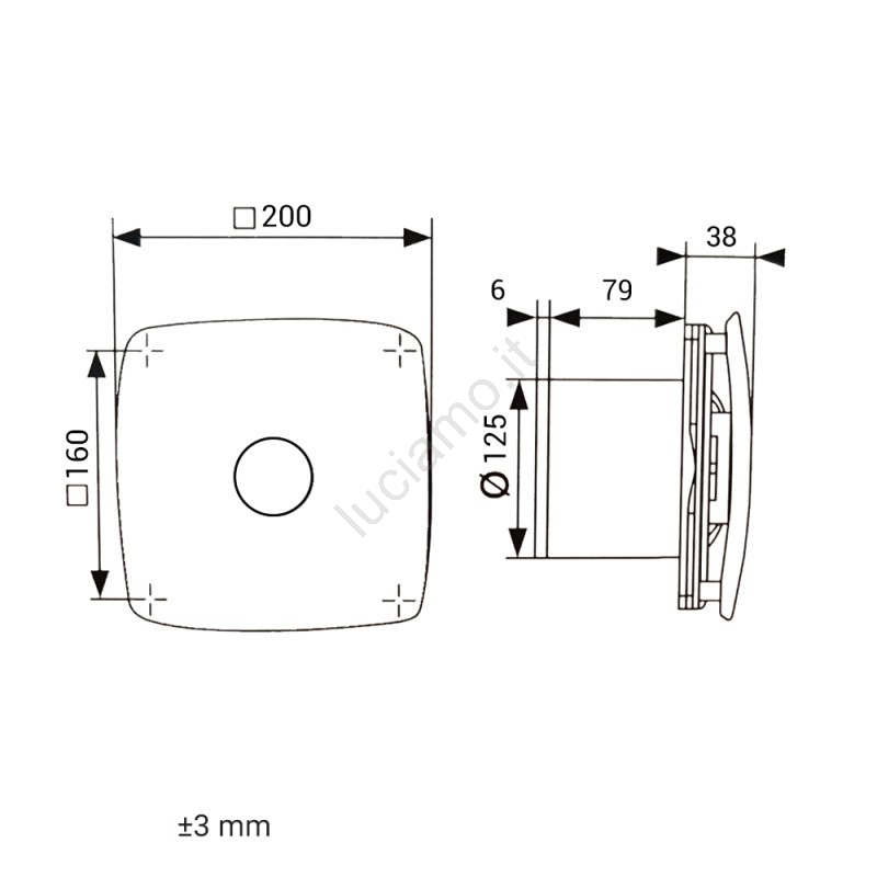 • Il ventilatore è compatibile con condotti di diametro 125 mm.