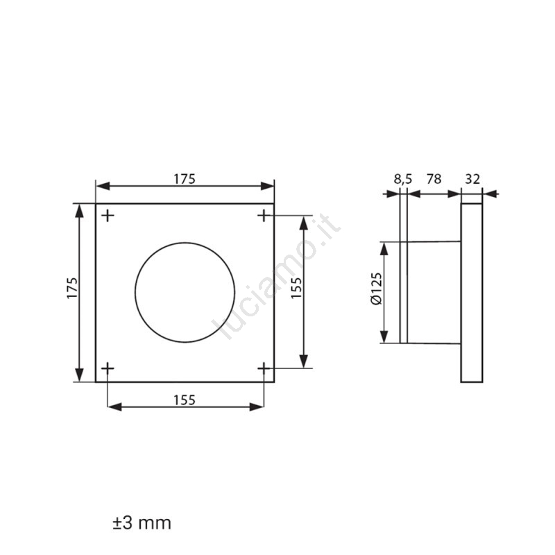 • Il ventilatore è compatibile con tubazioni di Ø 125 mm.