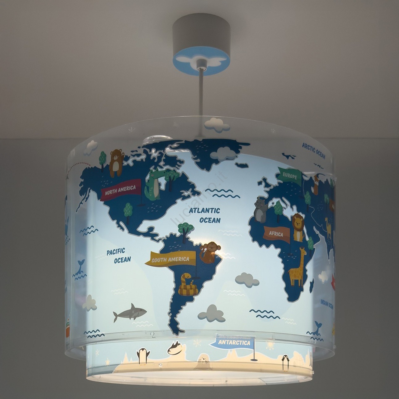 Dalber 40672 - Lampadario per bambini WORLD 1xE27/15W/230V blu