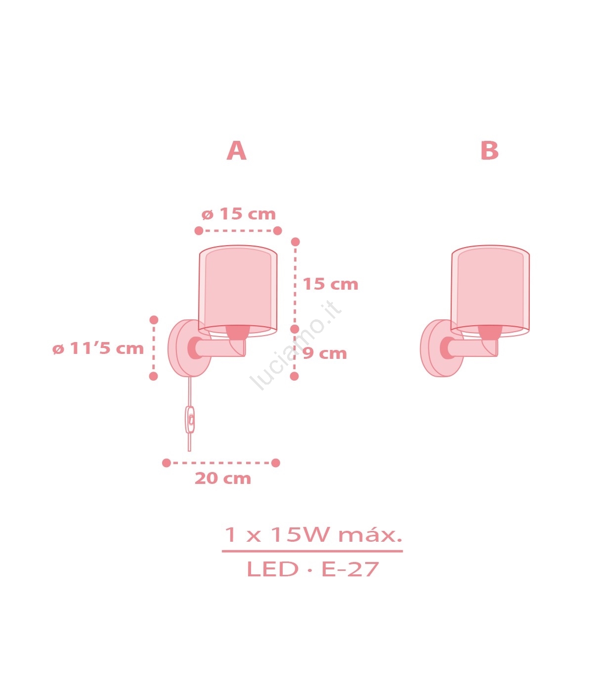 Dalber 41579S - Lampada da parete per bambini BABY TEDDY 1xE27/15W/230V rosa