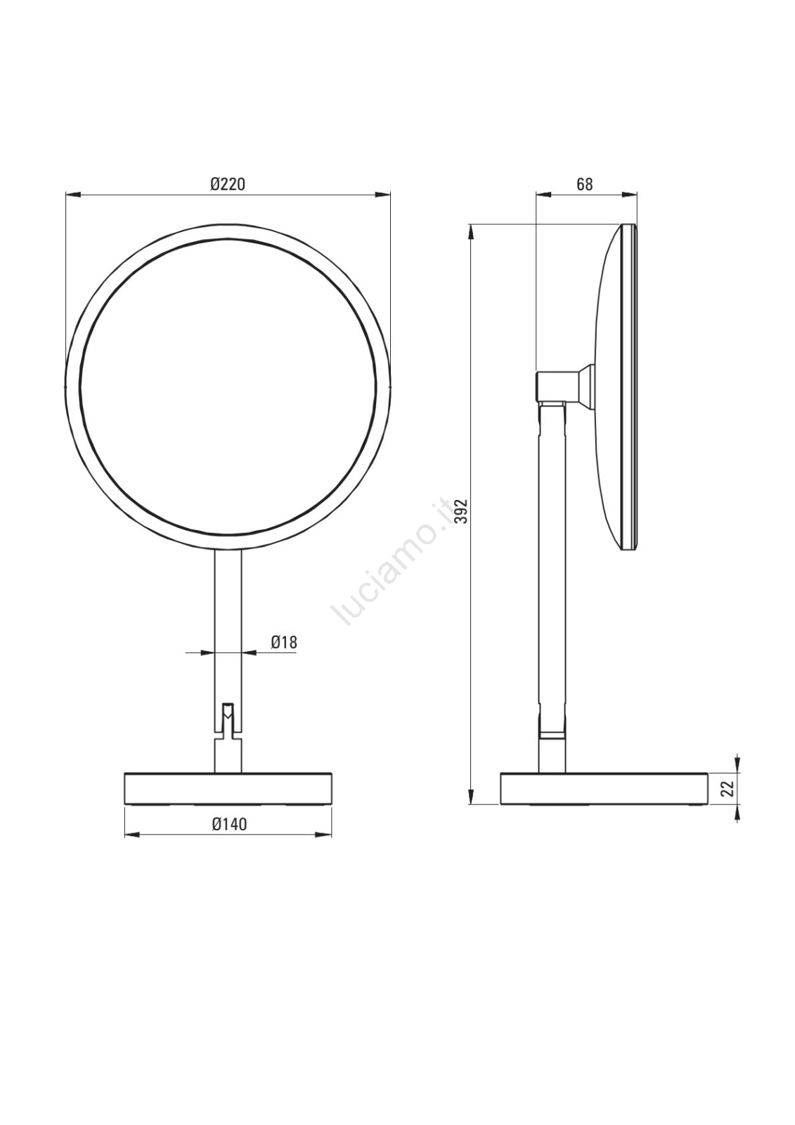 • Lo specchio con illuminazione LED uniformemente diffusa lungo il perimetro garantisce un'illuminazione precisa del viso.