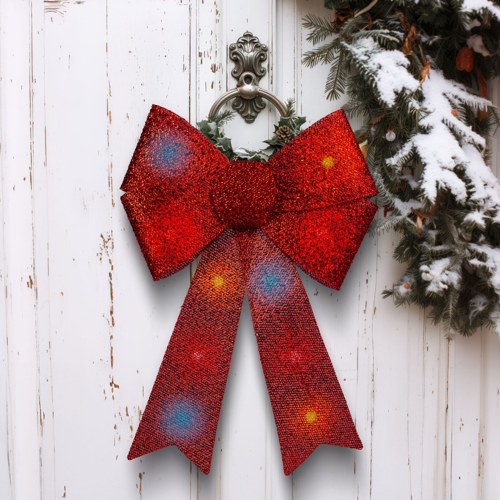 Decorazione natalizia LED RGB 11xLED/3xLR44 40x30 cm fiocco rosso