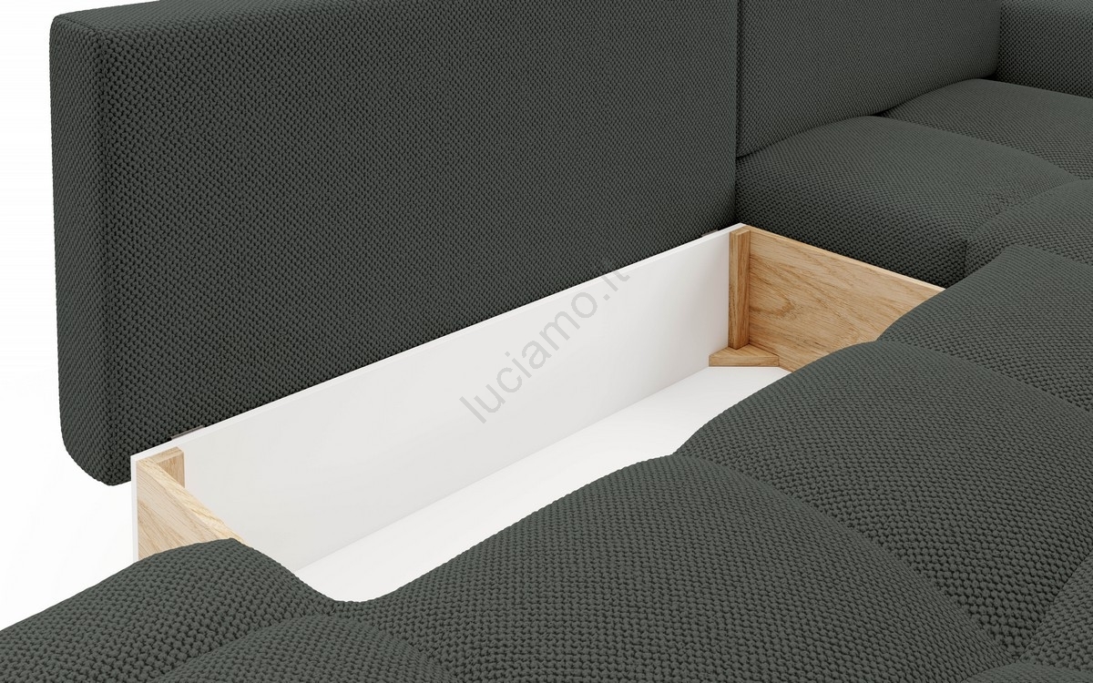 • Il divano dispone di un ampio vano contenitore per riporre biancheria da letto e altri articoli stagionali.
