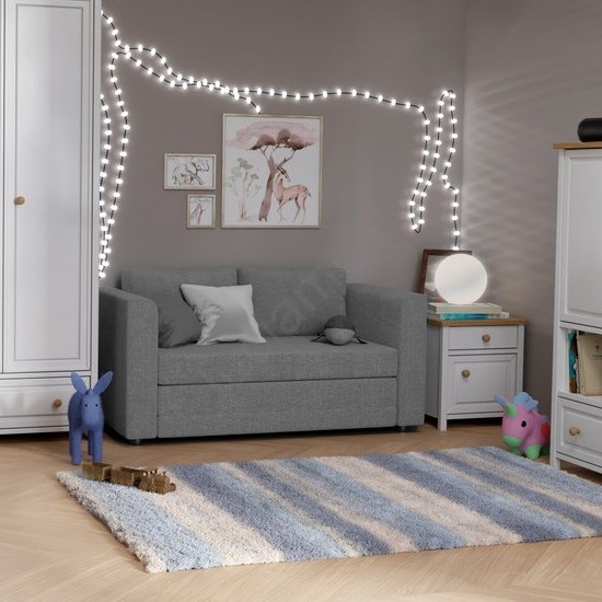 Divano letto imbottito 2 posti con braccioli LAYLA, grigio