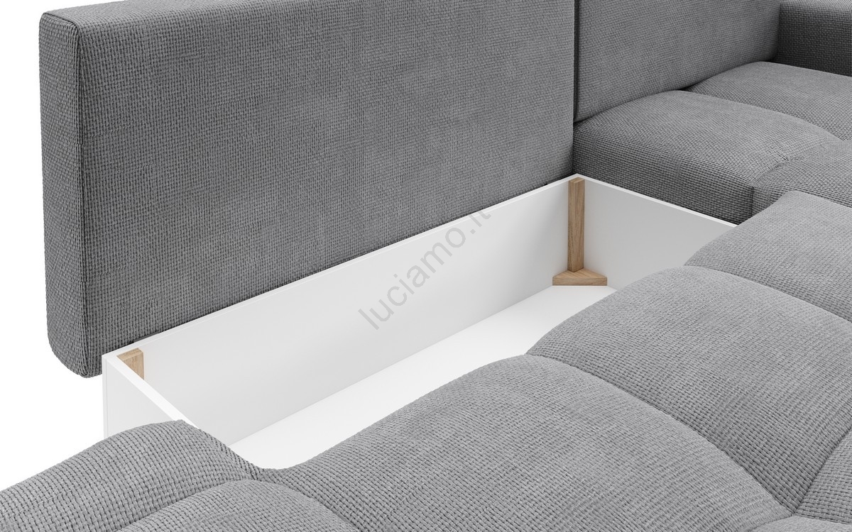 • Divano letto angolare imbottito con contenitore a L ALMADA angolo destro grigio