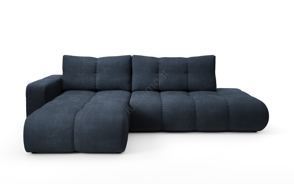 • Divano angolare imbottito a L con contenitore e letto estraibile ALMADA, angolo sinistro, blu