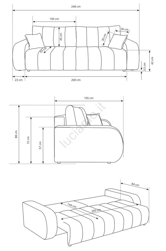• Il moderno divano letto 3 posti DESIO è la scelta ideale per chi cerca una combinazione di stile, comfort e praticità.