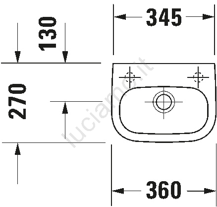 • Lavabo sospeso compatto della moderna e senza tempo serie D-Code del produttore Duravit.