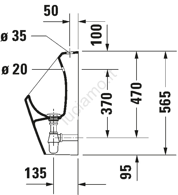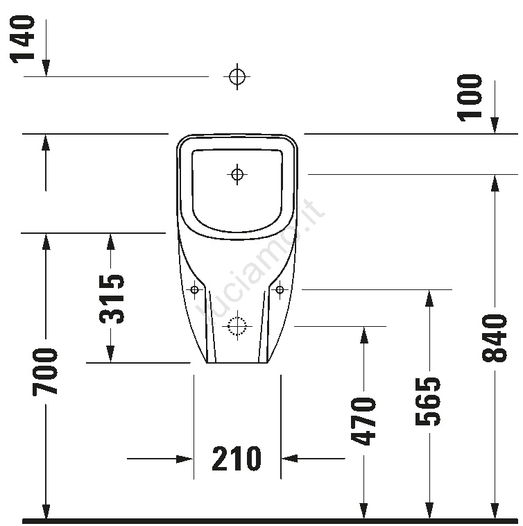 Duravit 828300000 - Urinale D-CODE senza brida, attacco acqua superiore, scarico posteriore, ceramica/bianco lucido