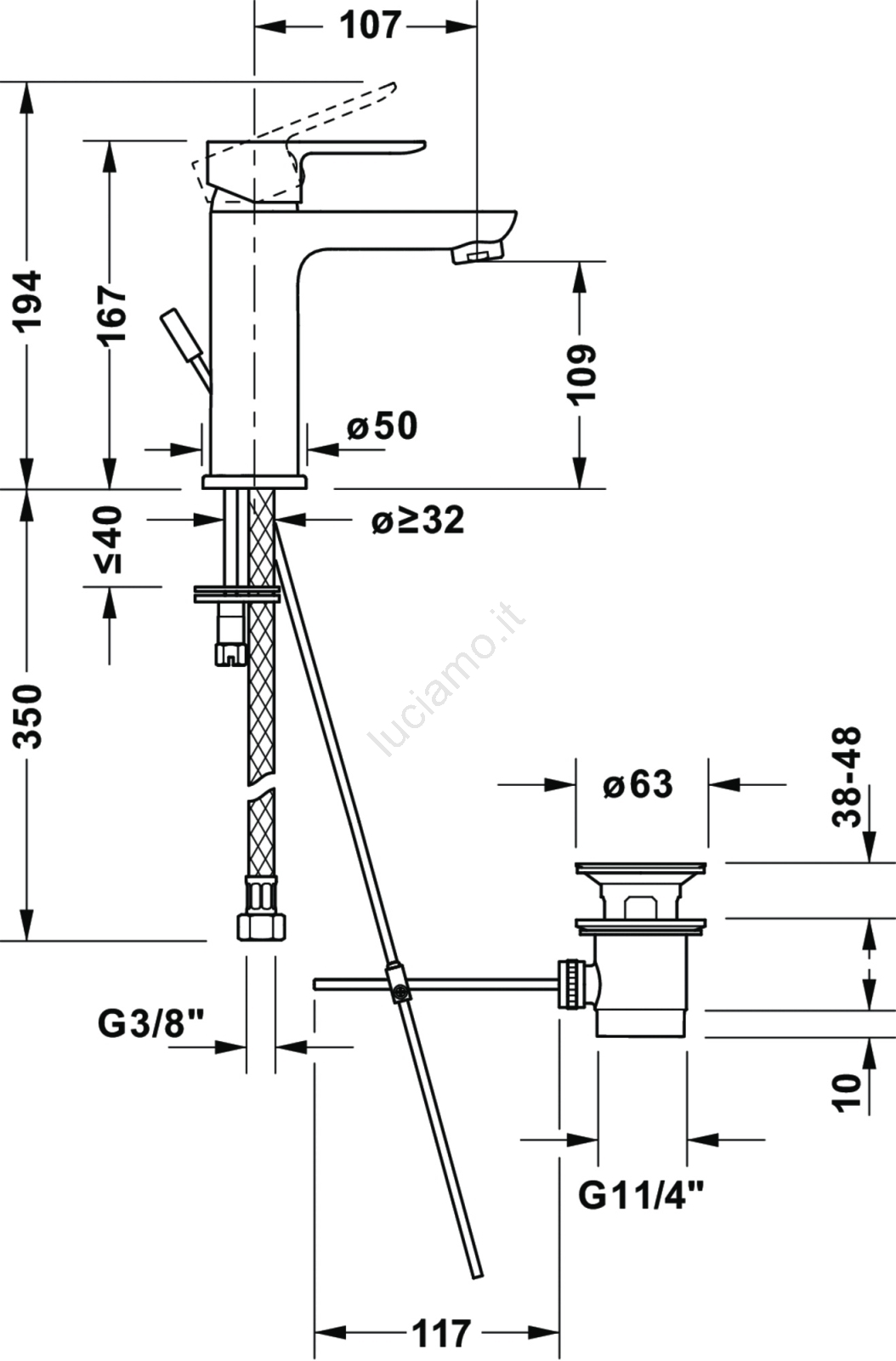 • Nella confezione è incluso un set di scarico con piletta click-clack.