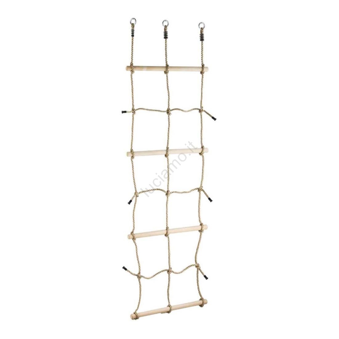 • Rete da arrampicata con pioli in legno e 3 anelli di sospensione.