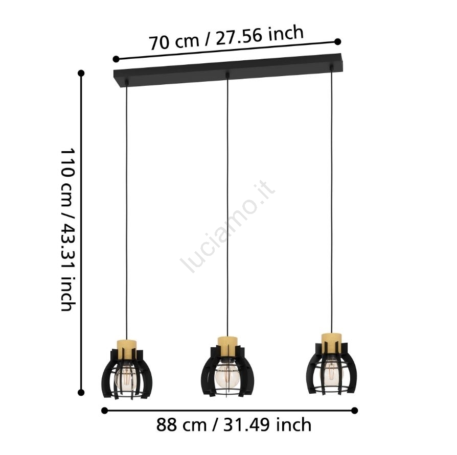 Eglo - Lampadario a sospensione con filo 3xE27/40W/230V caratterizza un design gradevole e funzionale. Per la lampada è adatta una lampadina con attacco E27. Qui puoi acquistare altre lampadine a prezzi vantaggiosi. Avrai un'aggiunta interessante alla tua casa.