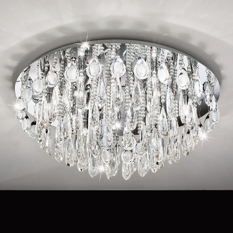 • Plafoniera da soffitto a montaggio superficiale con elementi in cristallo, colore della luce = bianco caldo.