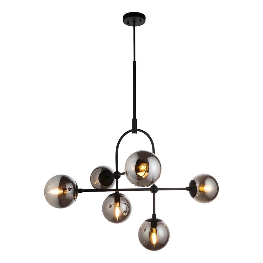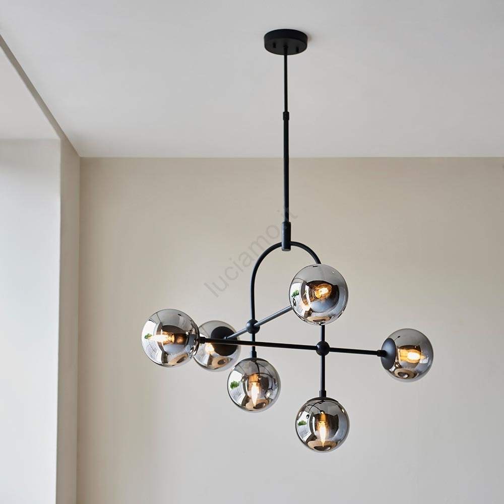 Endon 106661 - Lampadario a stelo ONTARIO 6xE14/7W/230V nero/nero fumé
