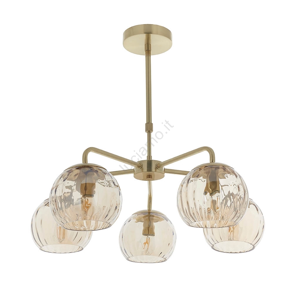 Endon 91969 - Lampadario a stelo DIMPLE 5xE14/25W/230V dorato caratterizza un design gradevole e funzionale. Per la lampada è adatta una lampadina con attacco E14. Qui puoi acquistare altre lampadine a prezzi vantaggiosi. Avrai un'aggiunta interessante alla tua casa.
