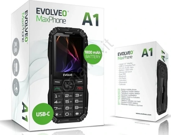 Evolveo - MaxPhone A1, telefono Dual SIM a pulsanti, nero
