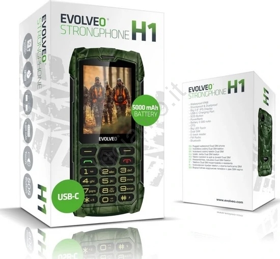 Evolveo - StrongPhone H1, telefono Dual SIM impermeabile, mimetica da caccia