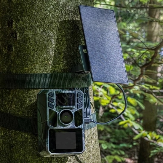 • La fototrappola è dotata di batteria integrata 5 000 mAh e pannello solare 1,6W per un funzionamento continuo senza necessità di ricarica.