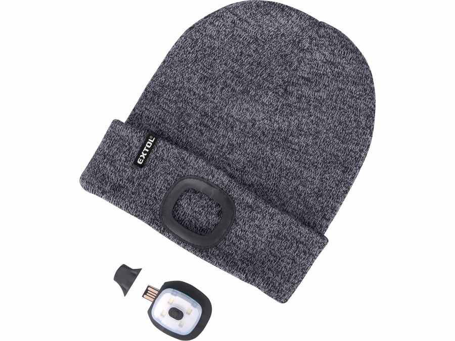 Extol - Berretto con lampada frontale integrata e ricarica USB 300 mAh, grigio, taglia unica