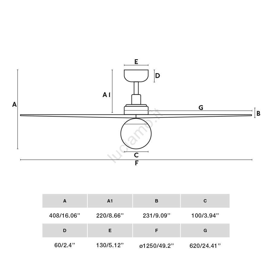• Ventilatore a soffitto con illuminazione.