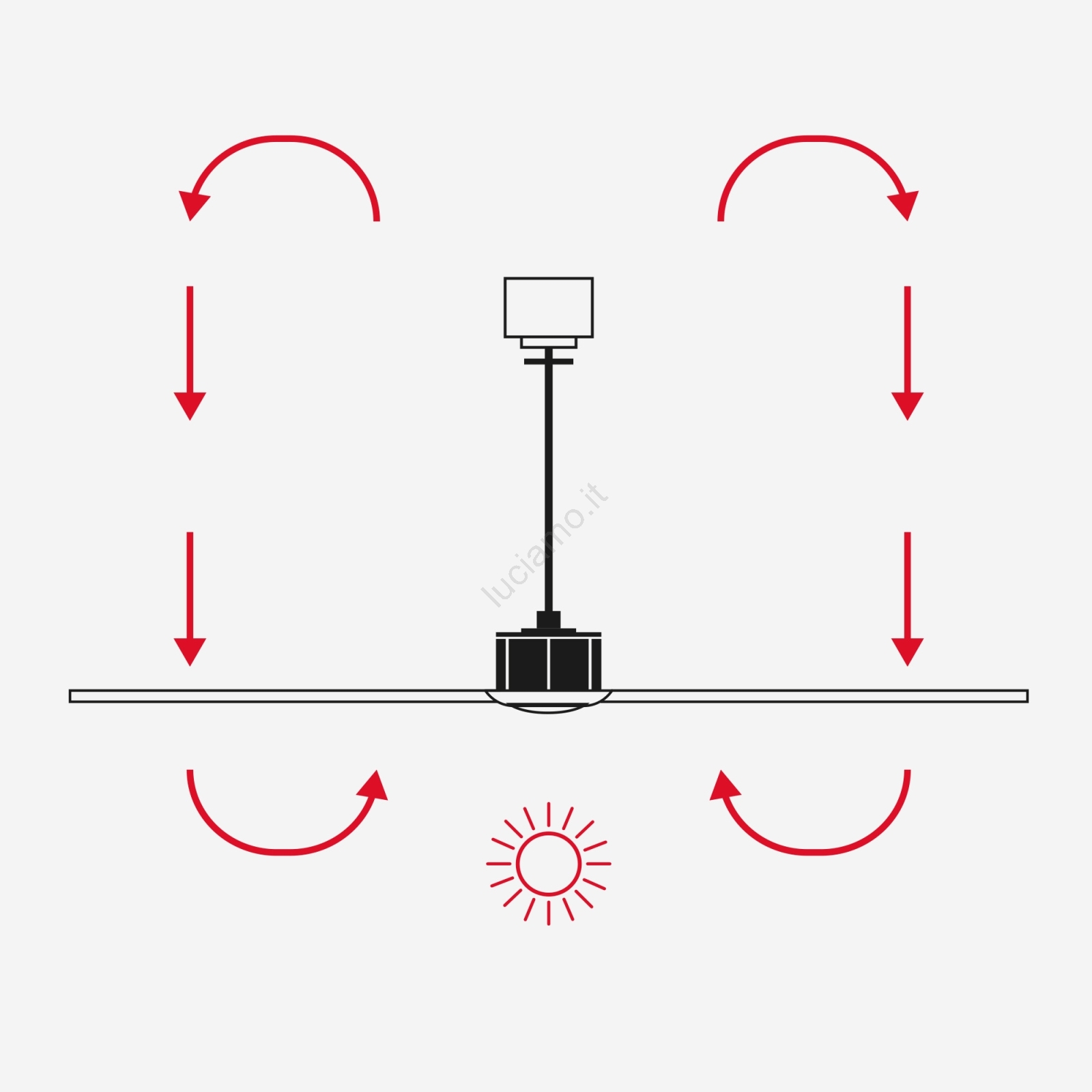 • Questo ventilatore dispone della funzione inversione estate/inverno, quindi può essere utilizzato anche in inverno (risparmio sui costi di riscaldamento fino al 20%).