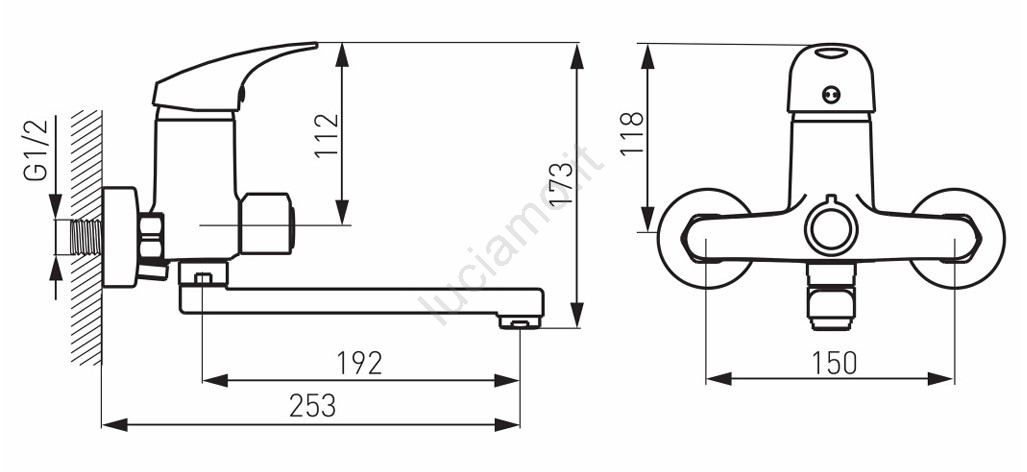 • Questo miscelatore vasca da parete per edifici a pannelli è un elegante complemento per ogni bagno.