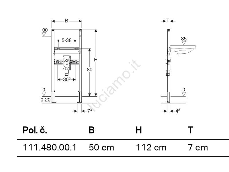 Geberit 111.480.00.1 - Modulo da incasso per lavabo sospeso Duofix 112 cm