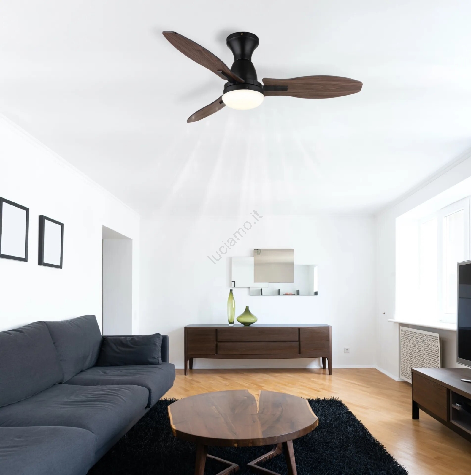 • Plafoniera LED con ventilatore integrato.