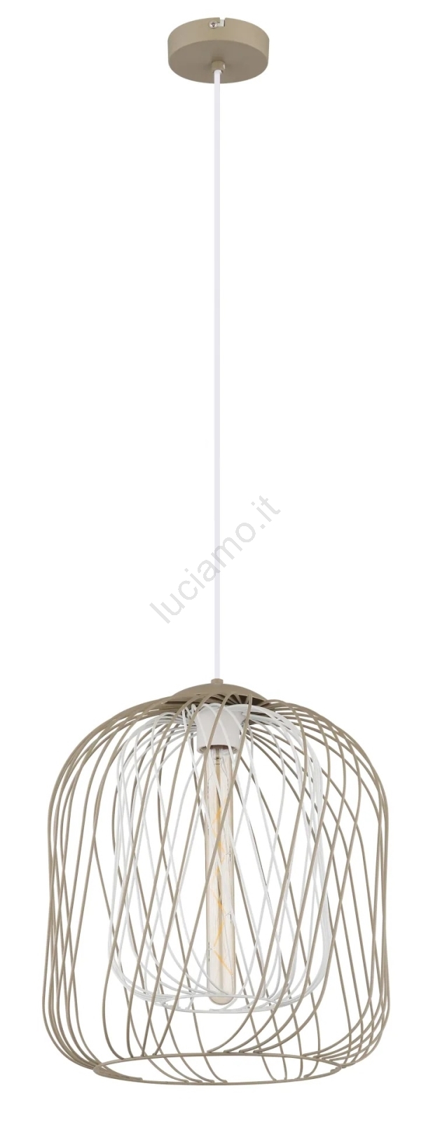 Globo - Lampadario a sospensione su cavo 1xE27/40W/230V Ø 35 cm beige/bianco