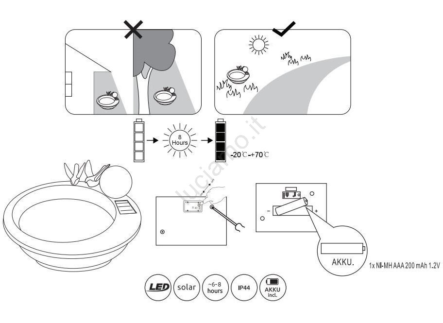 Globo - Lampada solare LED LED/0,06W/3V IP44 vaschetta per uccellini