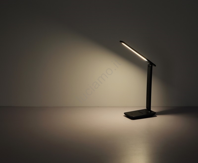 • Globo - Lampada da tavolo ricaricabile LED dimmerabile con controllo touch, 4W/5V, 2700/4000/6500K, batteria 1800 mAh, nera