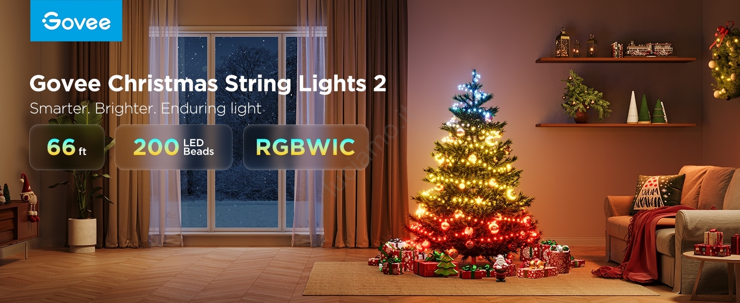 Govee - Catena natalizia a LED RGBICW per esterni 2700-6500K 20m Wi-Fi Matter IP66