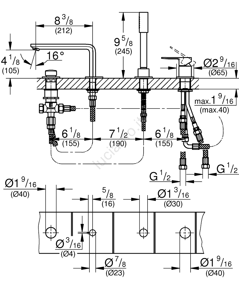 GROHE 19577001 - Set miscelatore vasca a quattro fori LINEARE, cromo lucido