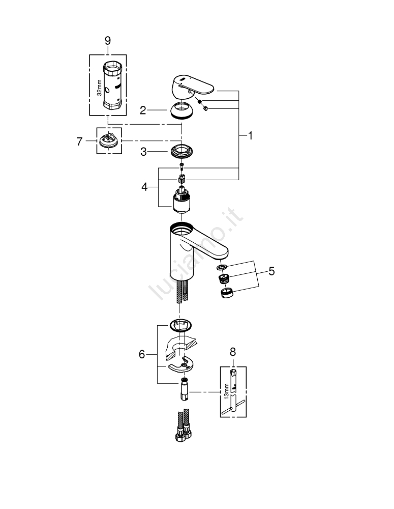 • Tubo flessibile di collegamento per un'agevole installazione.