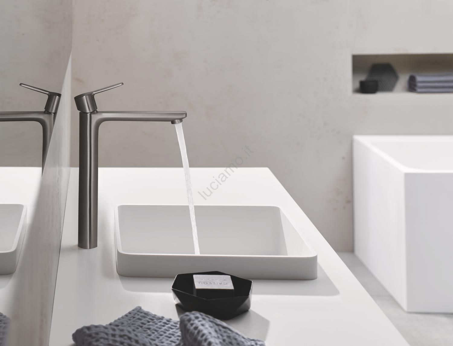 • Elegante miscelatore monocomando per lavabo GROHE Lineare con bocca extra alta, ideale per lavabi da appoggio (freestanding).