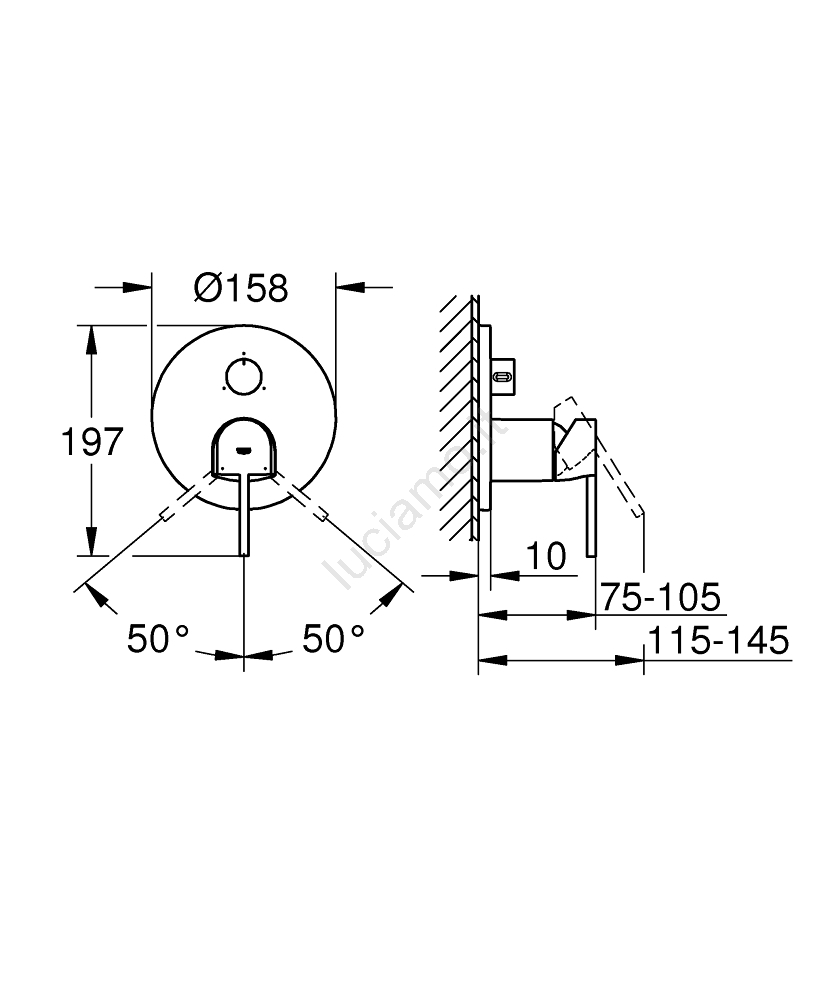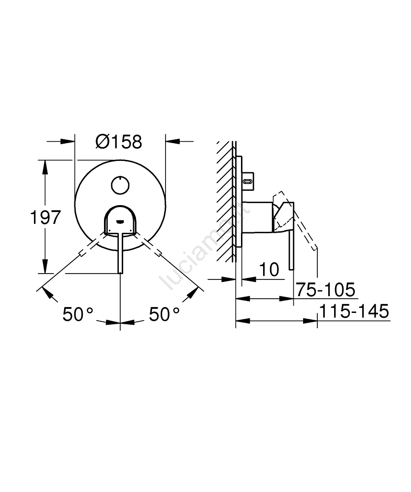 • Senza kit di installazione – corpo incasso da acquistare separatamente.