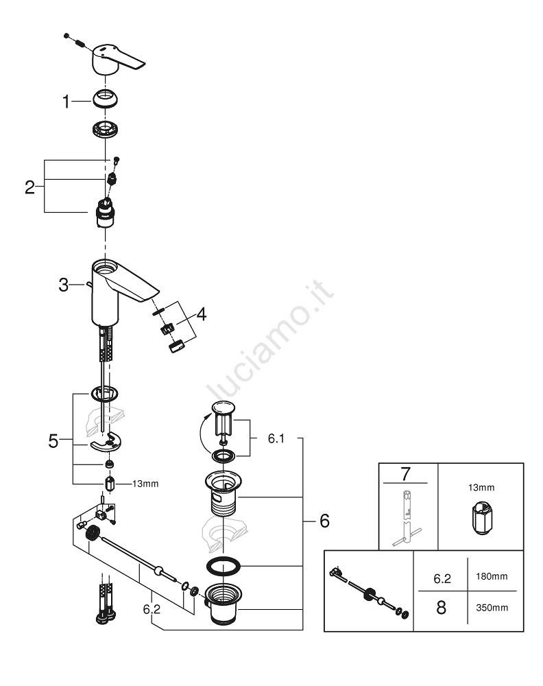 • Aeratore GROHE Water Saving riduce il consumo d'acqua a 5,7 l/min senza perdita di prestazioni.
