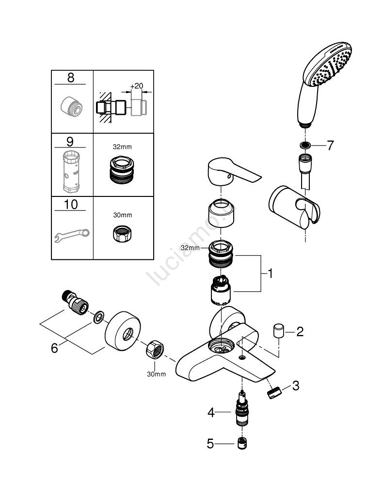 • GROHE QuickSpanner incluso per un'installazione rapida e semplice senza utensili aggiuntivi.