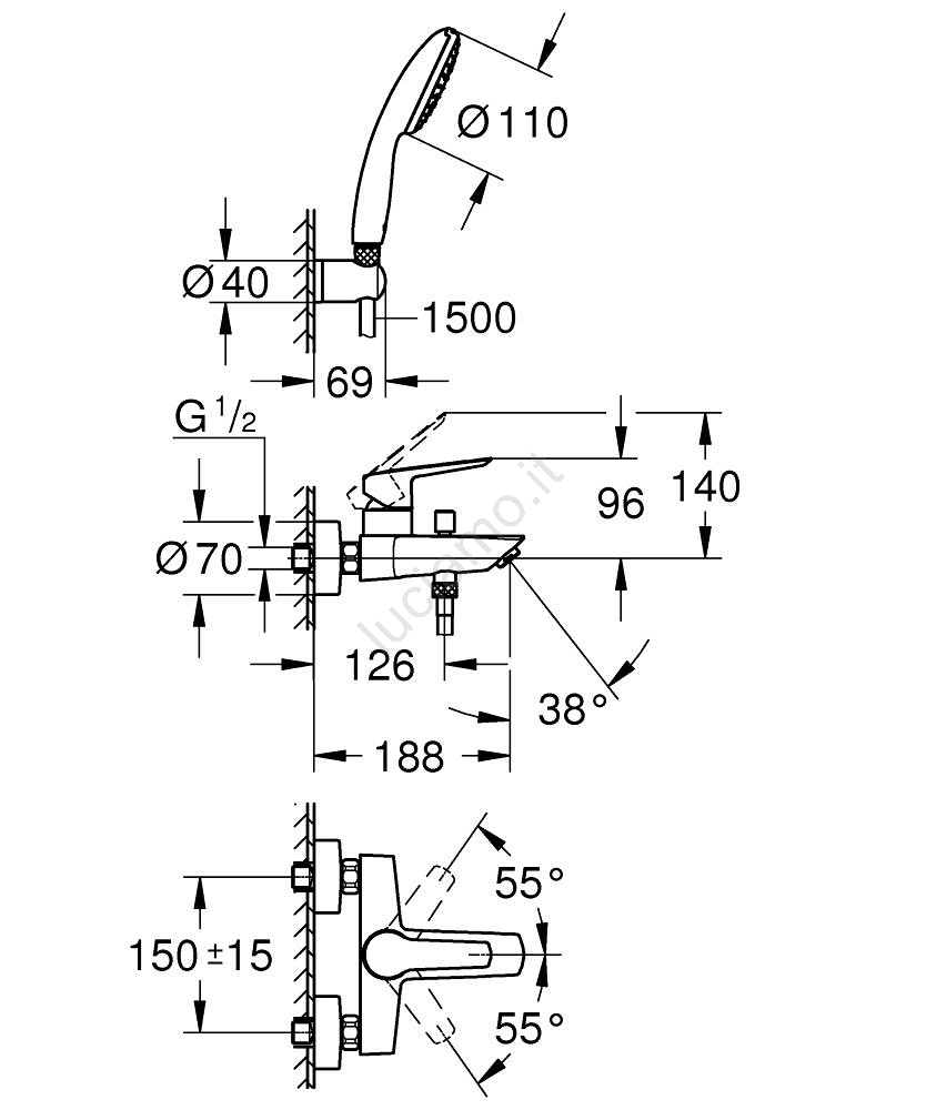 • Adatto per l'installazione a parete con interasse di 150 mm, ideale per la ristrutturazione del bagno.