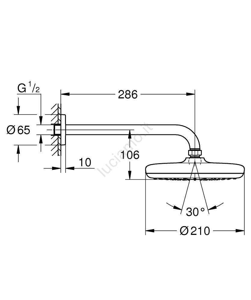• Incluso braccio doccia Rainshower di lunghezza 286 mm per un'installazione semplice.
