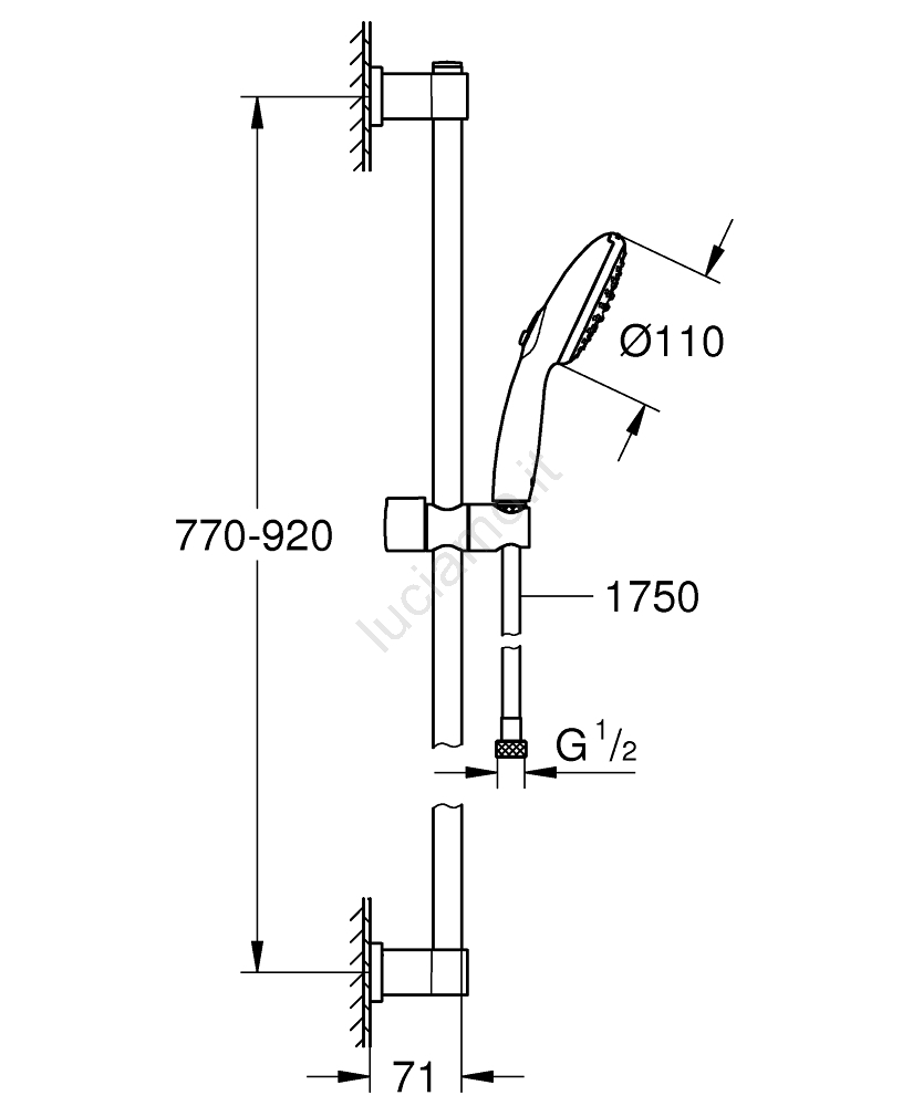 • Il supporto scorrevole regolabile permette di impostare comodamente altezza e angolazione della doccetta.