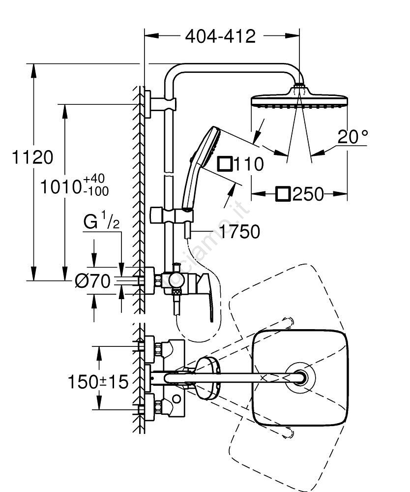 GROHE 26985001 - Sistema doccia VITALIO COMFORT 250 250 × 250 mm cromo lucido