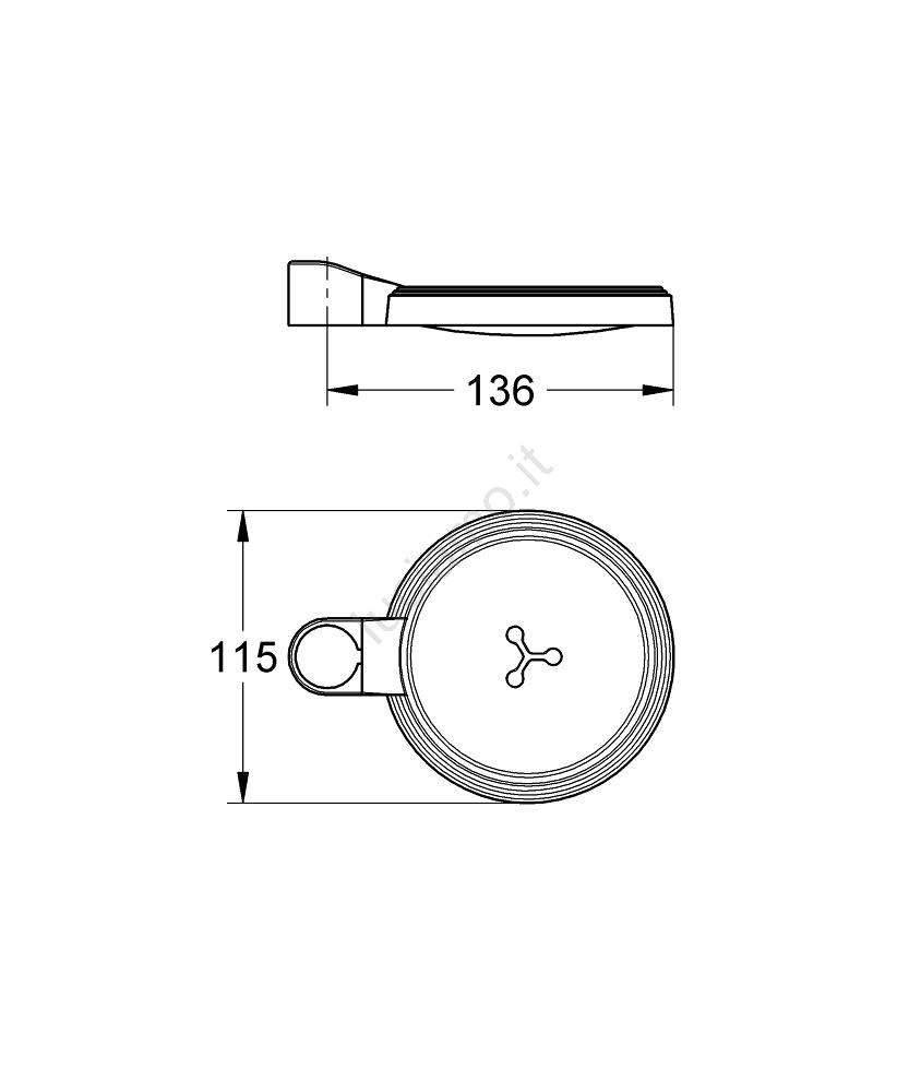 • Dimensioni: larghezza 115 mm, profondità 136 mm, altezza 30 mm.