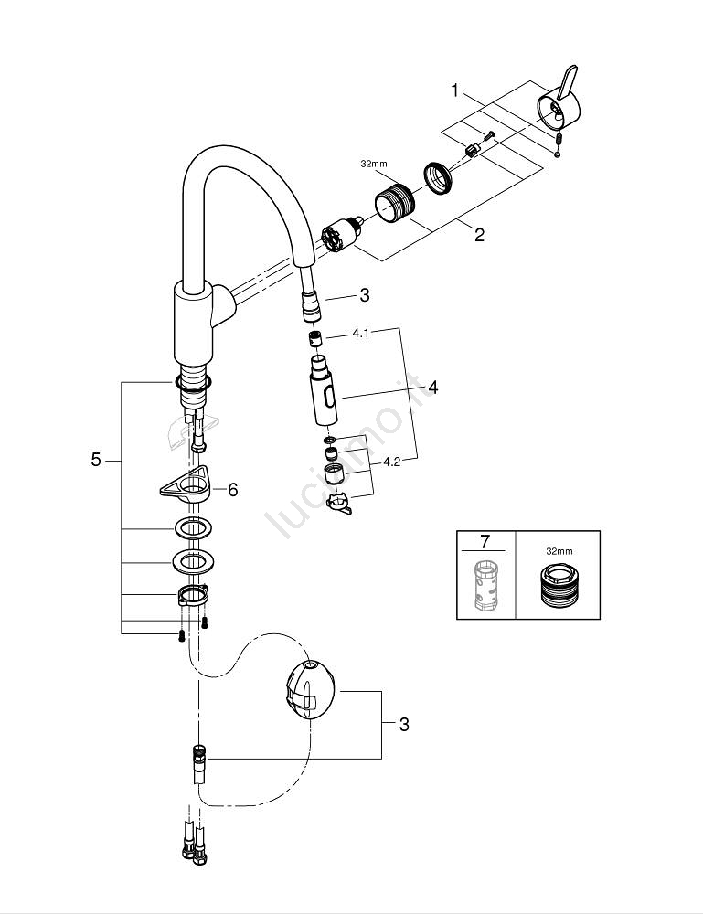 • Tecnologia GROHE EasyDock per un ritorno fluido della doccetta in posizione.