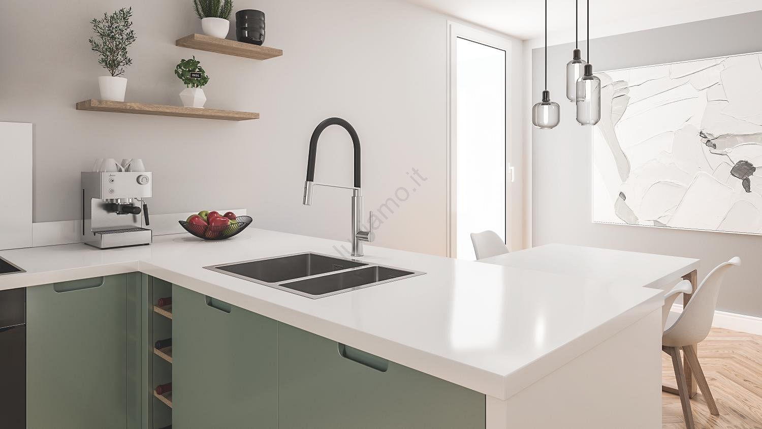 • Lavello in acciaio inossidabile GROHE K700U con 1,5 vasche per massima funzionalità.