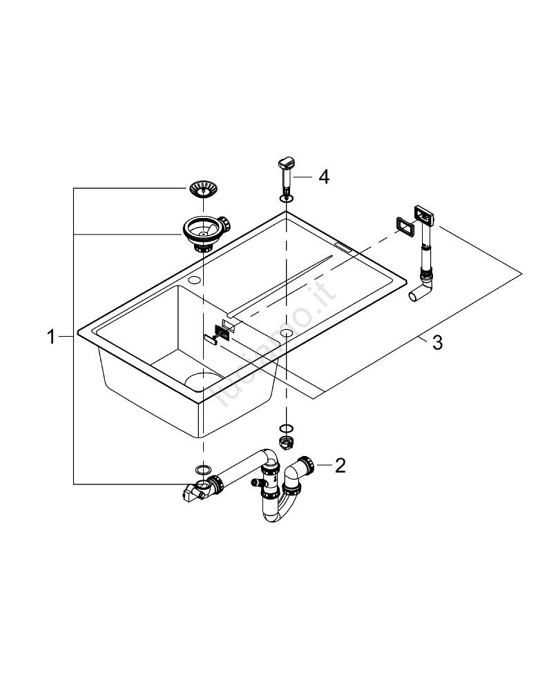 • Incluso nel kit: fissaggio automatico dello scarico con leva girevole, set di scarico, filtro raccogli-residui e kit di montaggio.