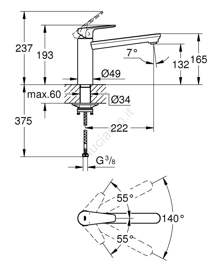 GROHE 31693000 - Miscelatore da cucina BAUEDGE 193 mm, cromo lucido