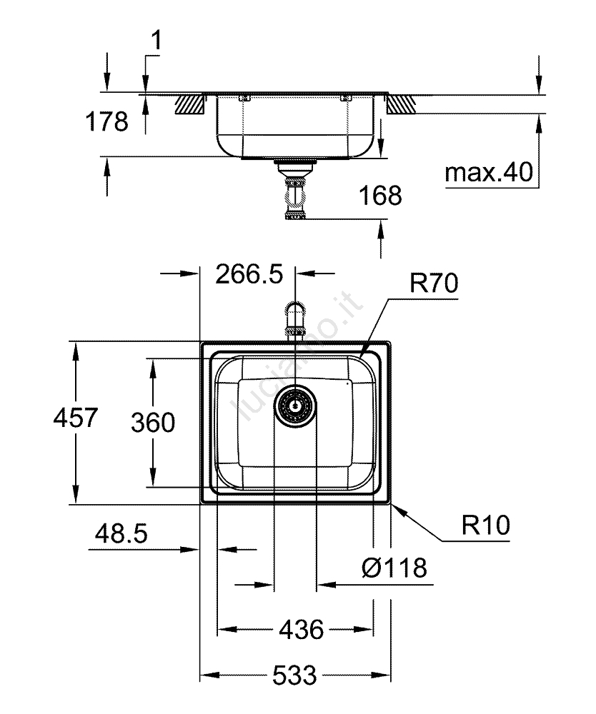• Il raggio interno della vasca R70 facilita la pulizia.